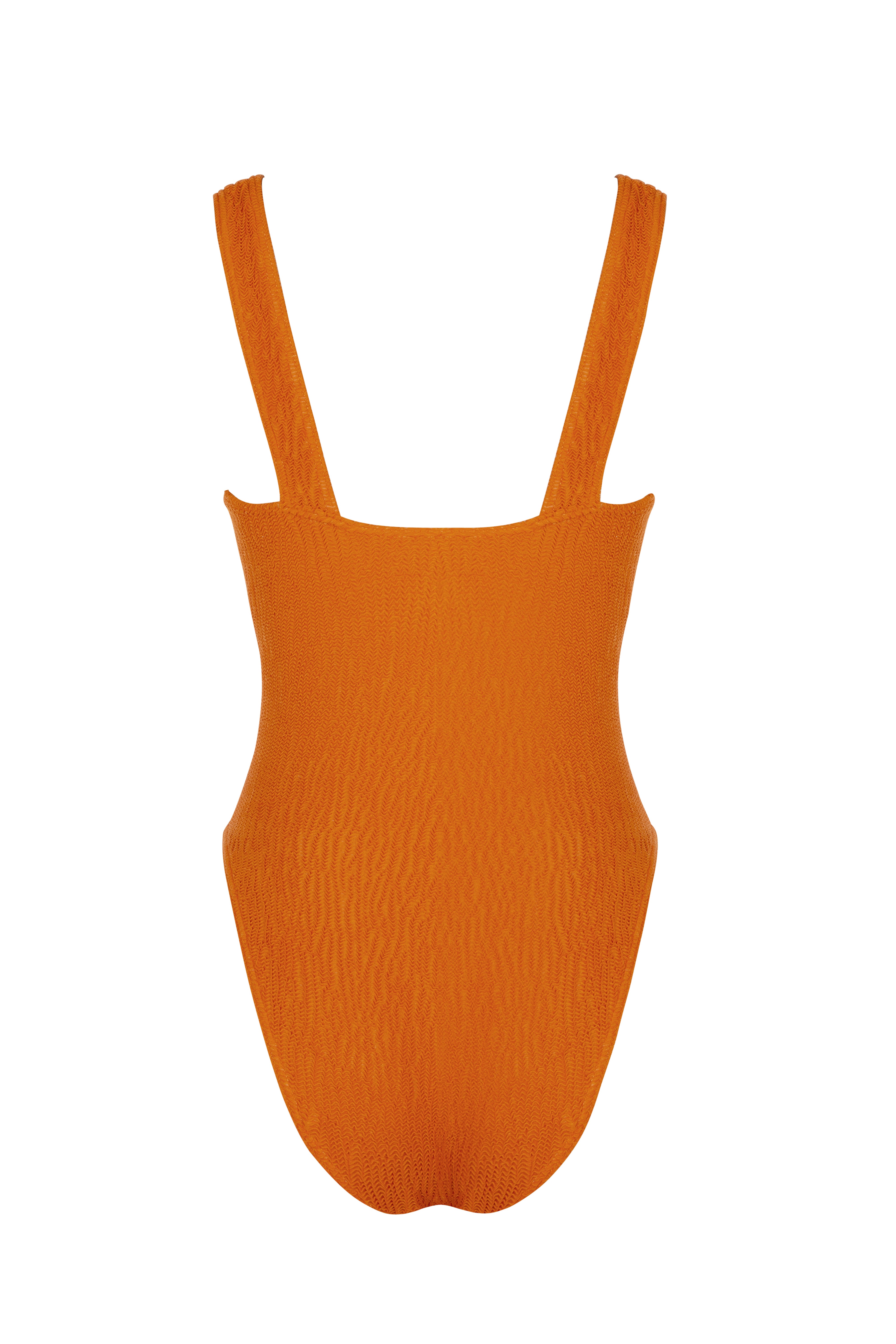 Designed for those who seek a little more coverage without sacrificing style, she’s equal parts classic and carefree. With a v-neck and thin adjustable shoulder ties, Electra offers a fresh, youthful twist on the traditional one-piece. Her moderate coverage at the back and softly scooped sides flatter the figure while ensuring a secure, confident fit.