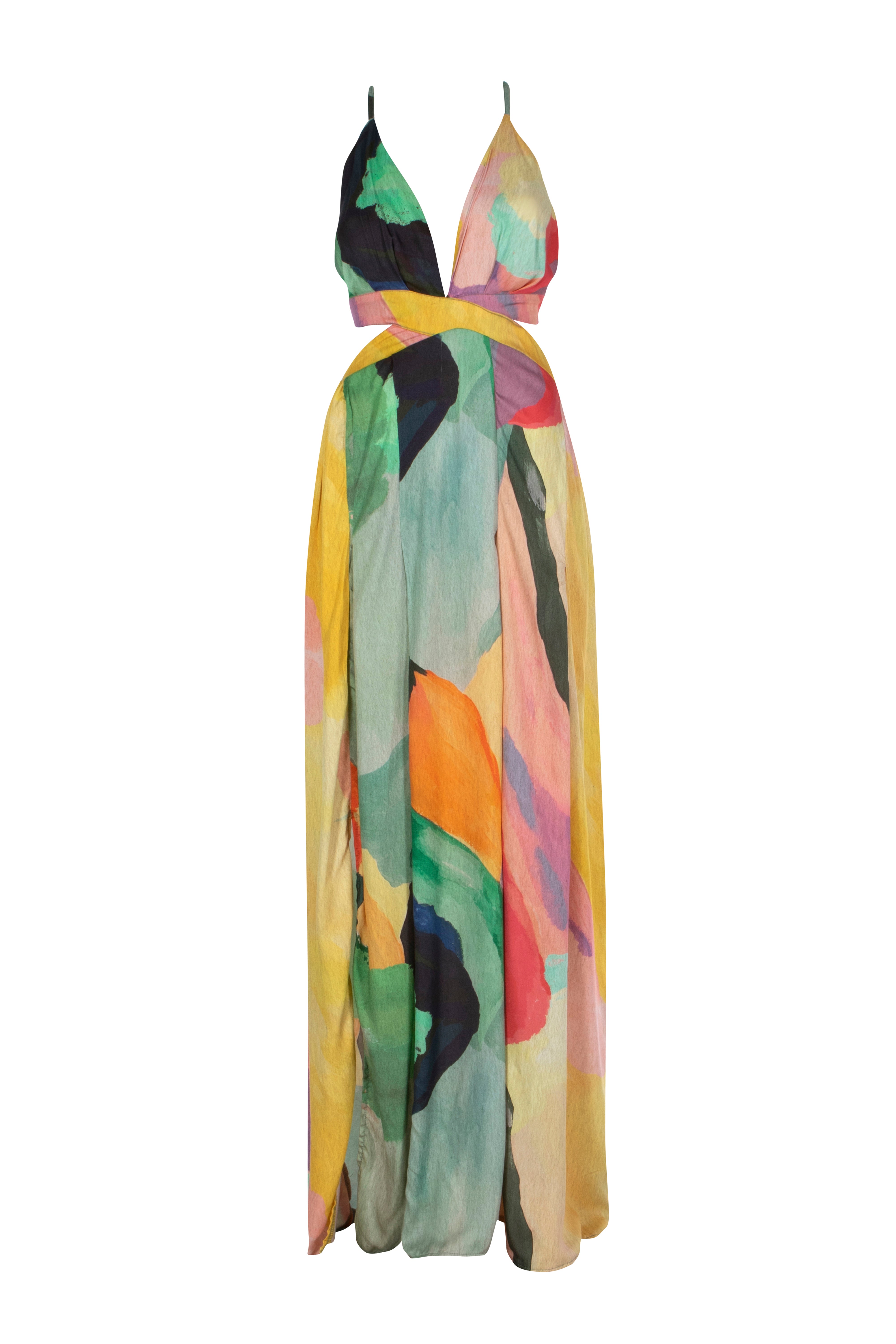 Our Caitlin Dress turns heads with its side and back cut-outs, fluid A-line skirt, and adjustable straps. A statement piece for golden hour strolls, destination weddings, or barefoot nights under setting skies.