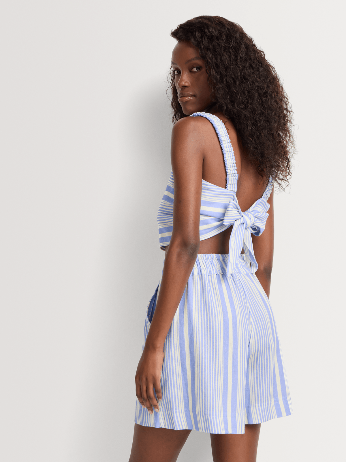 From our SS26 Riviera Collection, Coast features vertical sky blue and chalk-white stripes, evoking the timeless nostalgia of vintage Riviera summers.