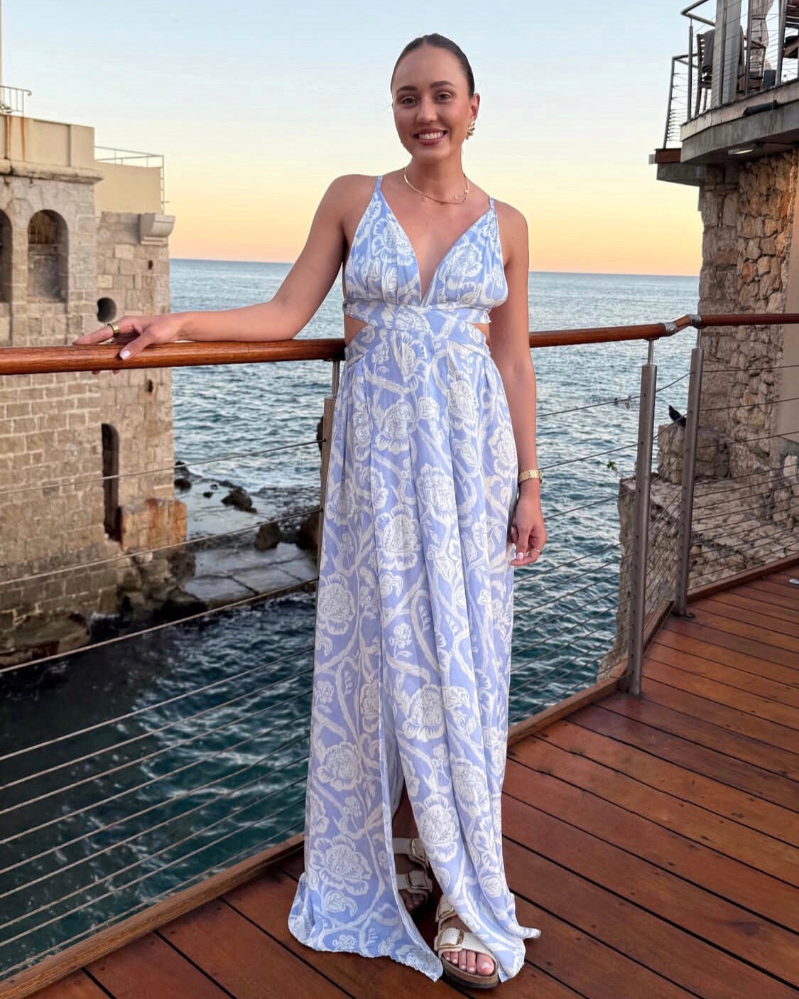 Our Caitlin Dress turns heads with its side and back cut-outs, fluid A-line skirt, and adjustable straps. A statement piece for golden hour strolls, destination weddings, or barefoot nights under setting skies.