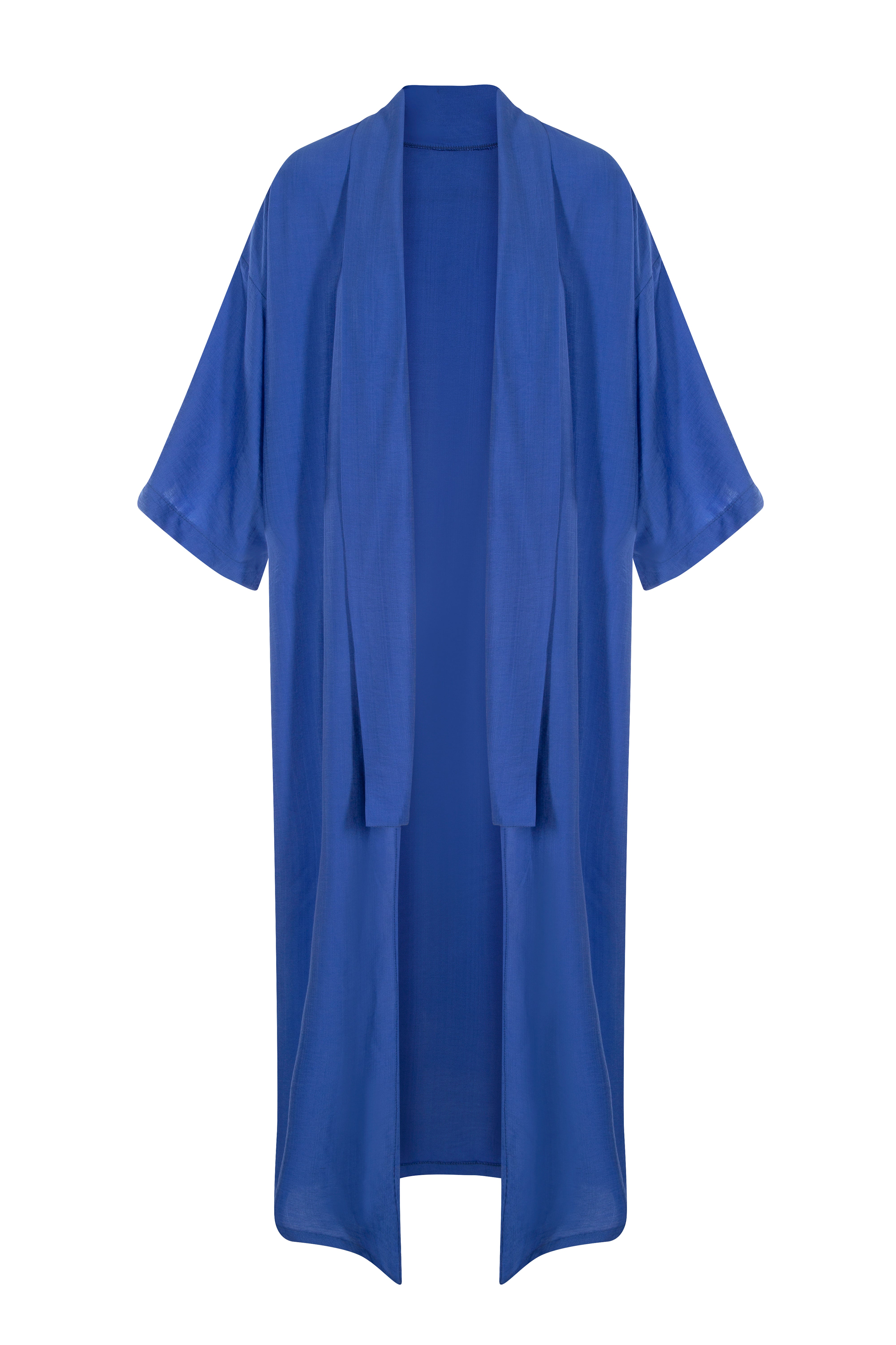 Elevate your style with the Apollo Kimono, a stunning piece that adds a touch of drama to any outfit. Its midi length and wide waistband, which can be doubled as a stylish headband, create a chic and versatile look. Pair it with matching corsica pants for a sophisticated ensemble or throw it over your swimsuit for a chic beach day.