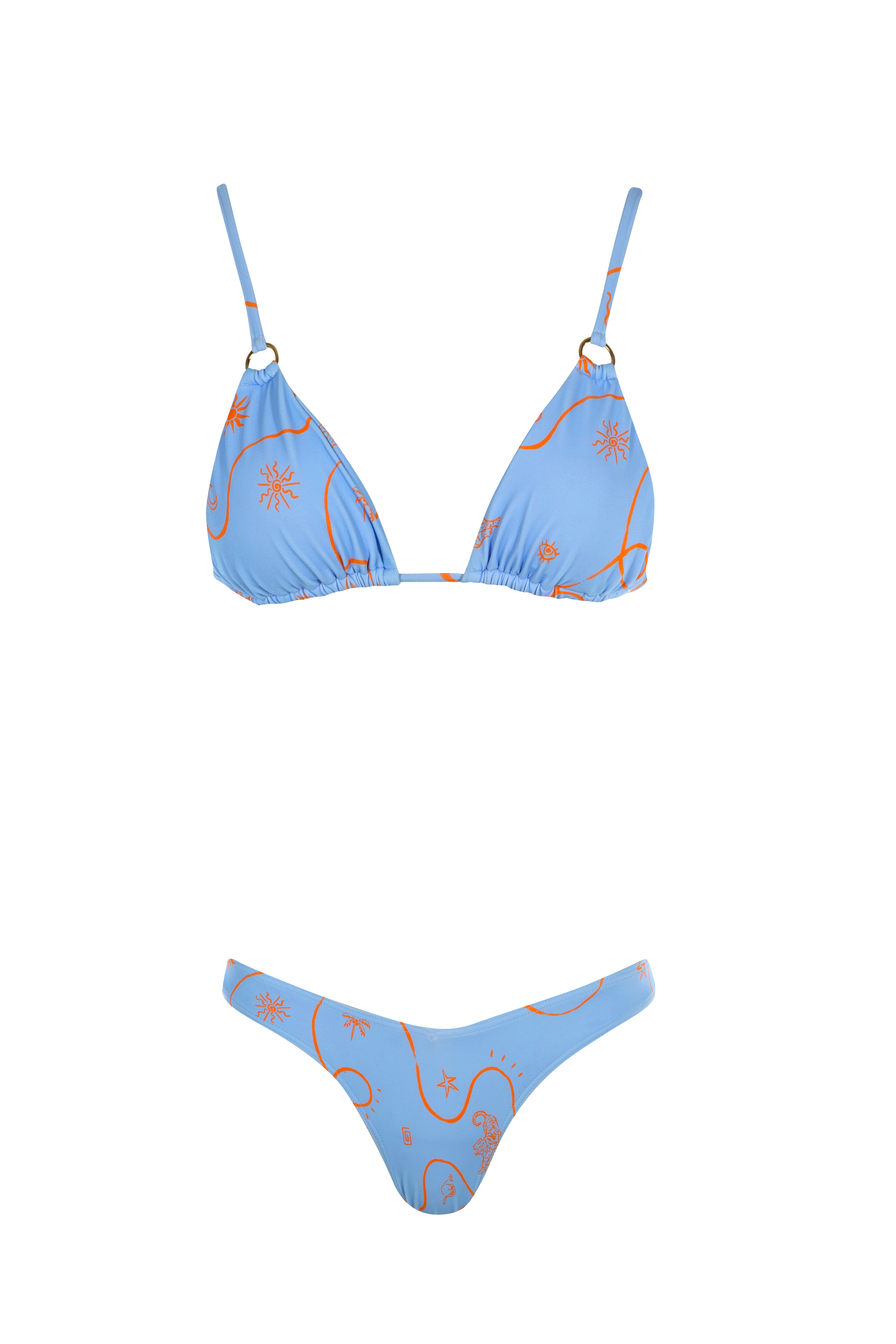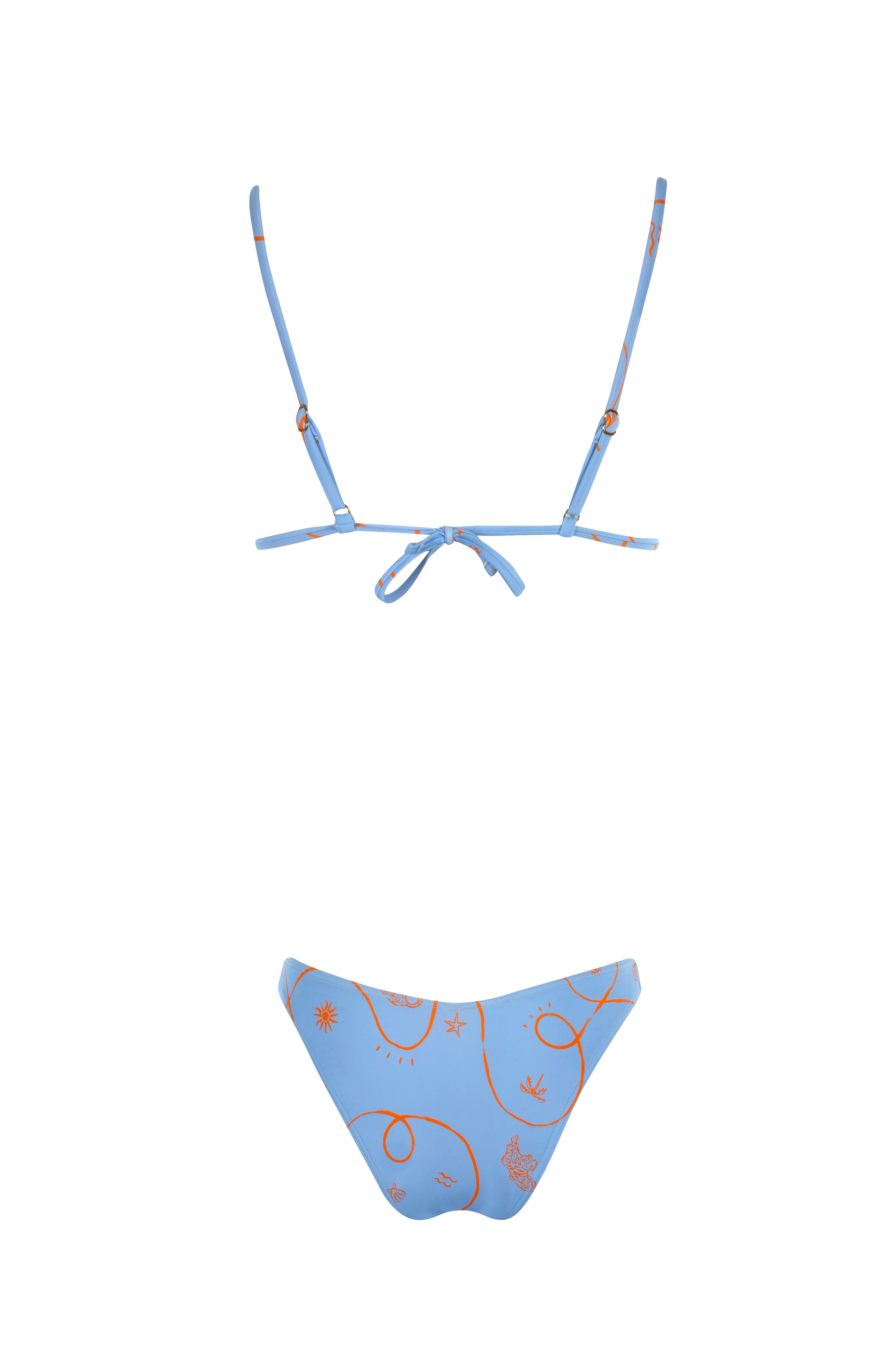 Blue Citrus features citrus orange lines drift across a sky blue base. Studio Pen’s hand-drawn BeachCult inspired motifs - swirling lines, abstract suns, tigers, and palms - create a playful, bohemian luxe feel.