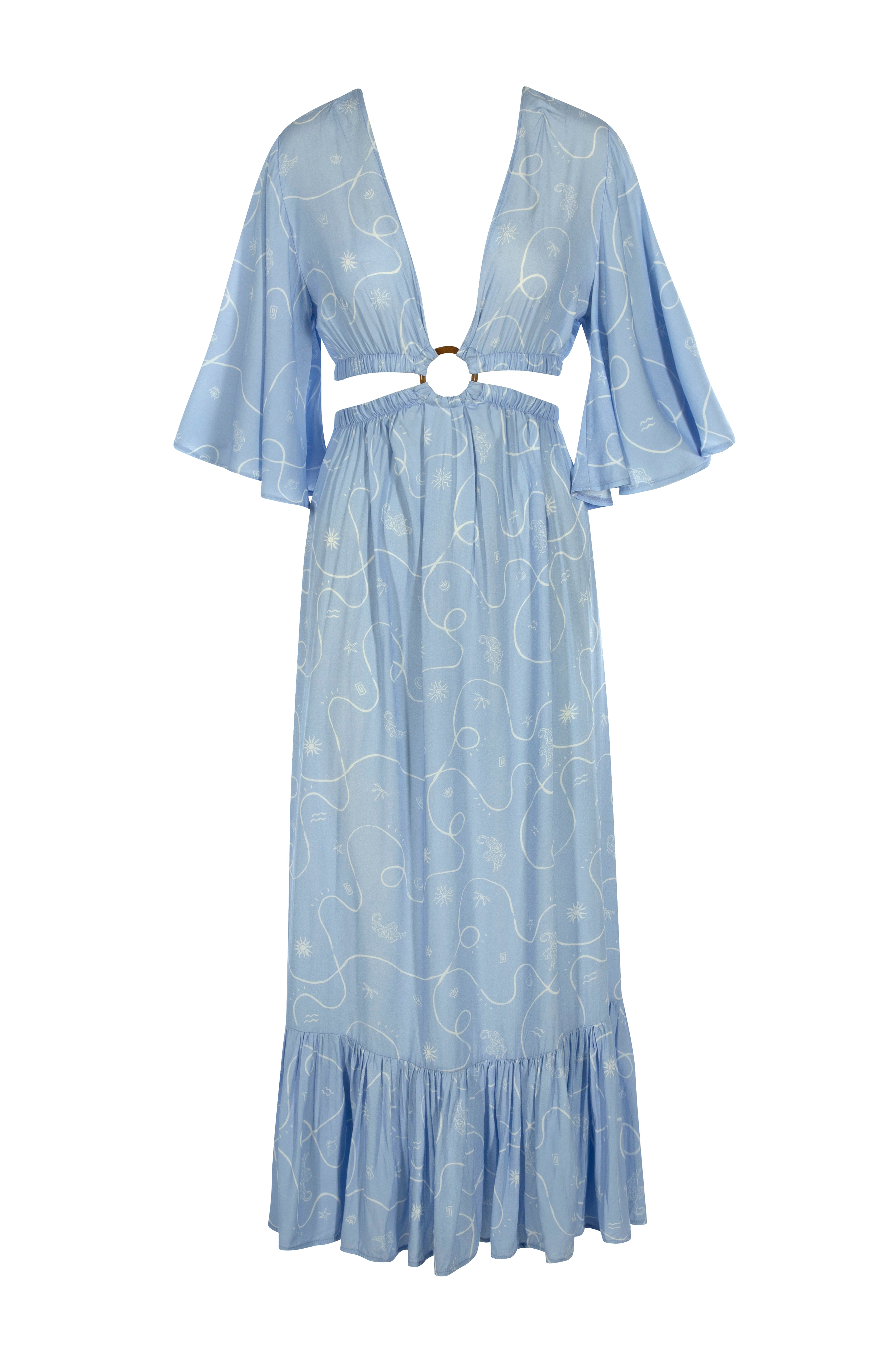The Lisbon dress features a hoop detail at the waist with cut outs and is open across the back.
